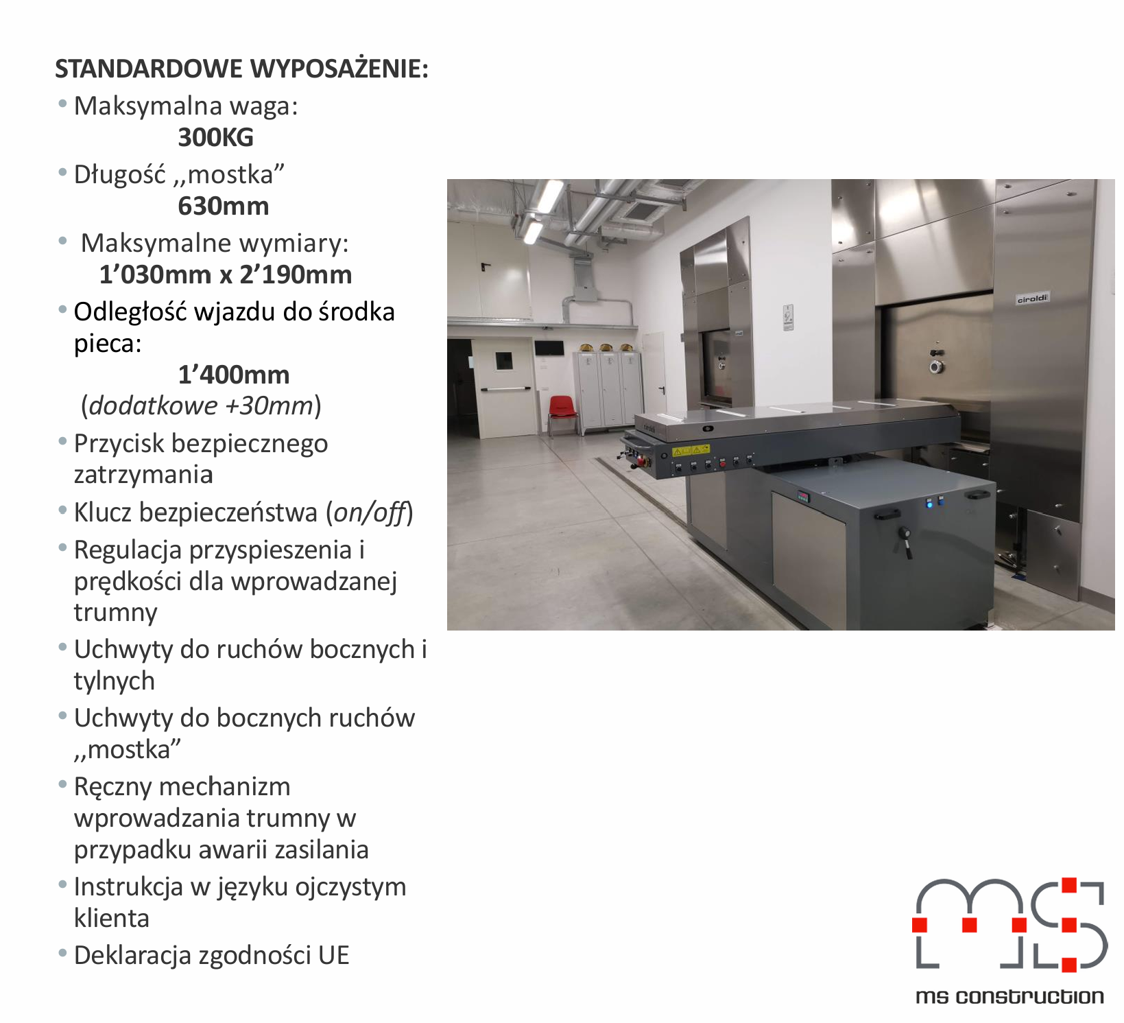 Nowa seria urządzeń do automatycznego załadunku to zaawansowany system, który usprawnia i unowocześnia proces kremacji. Zapewnia precyzyjne, niezawodne oraz bezpieczne wprowadzenie trumny.
